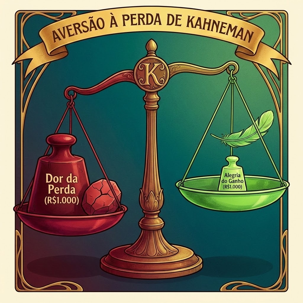 Para a nossa geração — que batalha diariamente para converter o suor do trabalho em um patrimônio sólido capaz de financiar a educação dos filhos e garantir uma aposentadoria digna —, a oscilação do mercado financeiro muitas vezes é lida como uma ameaça direta à nossa segurança. O Prêmio Nobel Daniel Kahneman explica essa reação através do conceito de “Aversão à Perda”. O cérebro humano sente a dor de perder dinheiro (mesmo que seja apenas uma desvalorização momentânea na tela) com uma intensidade duas vezes maior do que a alegria de ganhar a mesma quantia.